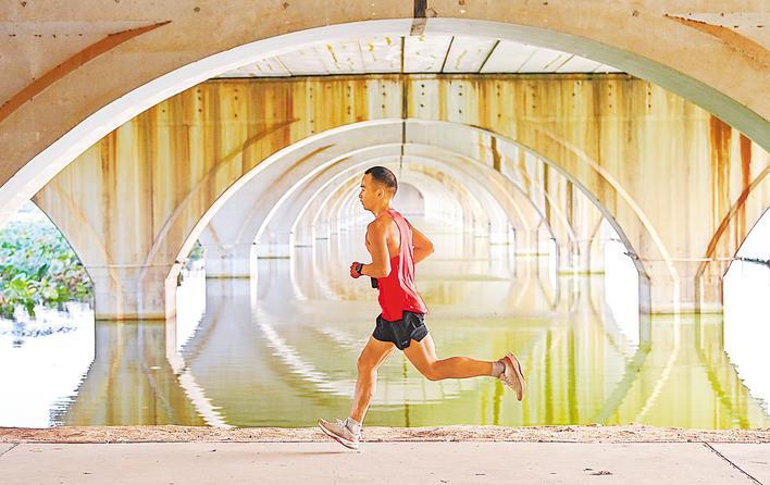 10月14日上午,阳光洒在武汉墨湖大桥下的水面和拱桥的石柱上。桥倒映在水中,就像一幅色彩缤纷的画,让人仿佛穿越时空隧道。 (湖北日报全媒体记者 朱西勇 提供)
