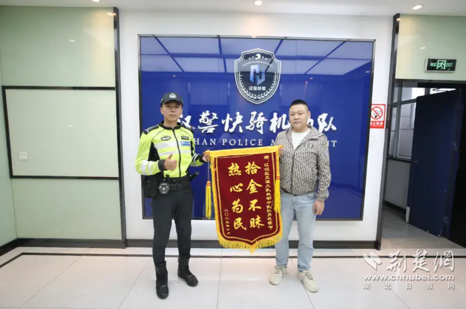 拿回一万元现金让人欣慰。武汉江汉交警因找到黄金而受到表彰并被授予锦旗。