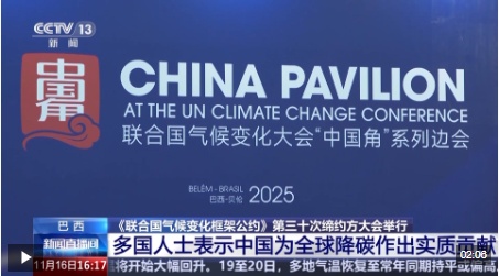 《联合国气候变化框架公约》第30届缔约方大会在巴西贝伦举行。 14日在大会“中国角”举行的“中国气候变化适应计划”边会上,多国官员高度评价中国在低碳技术、能源转型和全球绿色合作等领域的贡献。