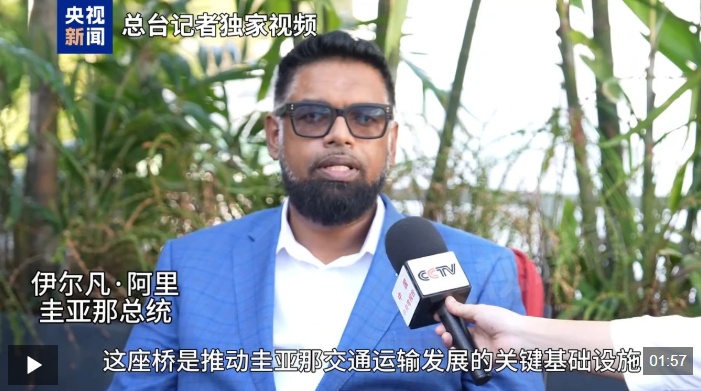 圭亚那总统称赞了中国项目,并向中国发出了祝福 2025-10-05 11:35 577评论 在中国国庆日和总理节之际,加勒比海的圭亚那人民也借此机会展示了“快乐活动”。迄今为止,新的Demera River Bridge是该国最大,最复杂的运输基础设施项目,即将开放。这座现代桥由中国团队设计,建造和建造,大大改变了圭亚那首都乔治敦的交通状况,使当地人能够将自己分离为在繁忙的庞顿桥上排队的经验。 在桥梁开放的前夕,圭亚那阿里总统接受了台湾中心的一名记者的独家采访。单击视频以查看圭亚那总统的祝福! 请尊重我们的辛苦付出,未经允许,请不要转载爆料网61今日爆料 每日大赛精彩回顾的文章! 上一篇:从“外观”到“输入作品”,Xiangyang的“更新”的沉浸式体验引起了文化和旅游业的“ 下一篇:没有了