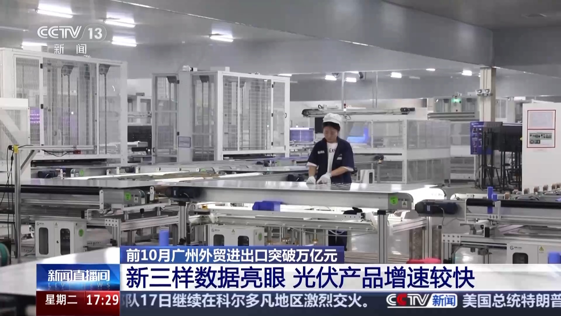 广州海关所属花都海关副关长 高鹏:今年前10个月,广州“三新产品”出口199.4亿元,比上年增长52.8%。其中,太阳能产品出口16.2亿元,比上年增长2.3倍。