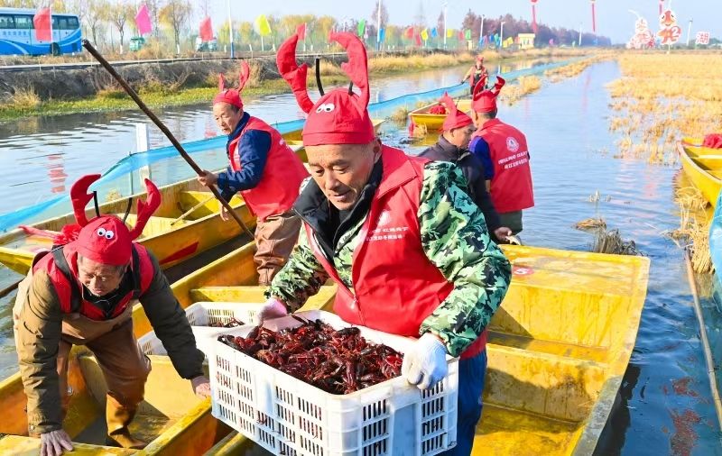潜江冬龙虾虾捕捞景观。